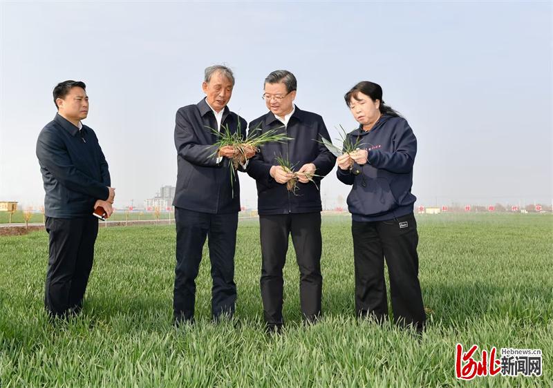 当前正值春耕生产的关键时期。倪岳峰来到宁晋县北楼下村全国农业科技现代化先行县示范基地,走进麦田察看苗情和墒情,听取良种推广和节水农业发展情况汇报,与农业科技专家深入交流。倪岳峰指出,抓好春耕生产,对于保障全年粮食丰收、确保国家粮食安全意义重大。要落实粮食安全党政同责,实行最严格的耕地保护制度,加快打造高标准农田,坚决遏制耕地“非农化”、基本农田“非粮化”。要组织农民抢抓农时,做好春耕生产工作,推动农业科技工作队伍和人员深入田间地头开展农技指导,为粮食丰收奠定坚实基础。要大力发展节水农业,推广节水高产新品种,完善喷灌、滴灌和渠系等配套设施,不断深化地下水超采综合治理。要扎实推进农业现代化发展,开展好新型农业经营主体提升行动,强化社会化服务,发展农业适度规模经营,促进农业增效、农民增收,加快我省由农业大省向农业强省转变。