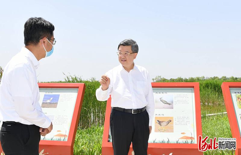 6月1日,省委书记、省人大常委会主任倪岳峰在孝义河河口湿地调研。河北日报记者赵海江摄
